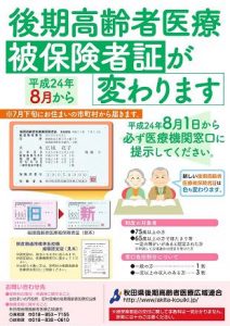 平成24年8月1日の被保険者証(保険証)更新を周知するため、ポスターを作成し、県内の医療機関、介護施設等へ送付しました。